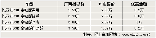 比亞迪F3R在推出金鉆版系列車型之后,受到很多消費(fèi)者的關(guān)注與喜愛。金鉆版比亞迪F3R車型增加到了3款,全系售價區(qū)間為5.59萬元-7.59萬元。網(wǎng)上車市網(wǎng)站了解到,近日比亞迪F3R時尚型最高可優(yōu)惠10000元,其他車型也可優(yōu)惠2000到8000元不等。詳情如下: