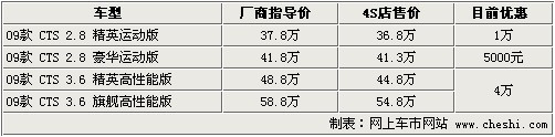 在美國素有“駕駛者之車”美譽的凱迪拉克CTS豪華運動轎車,是一款將動力性、操控性、舒適性完美結(jié)合的經(jīng)典產(chǎn)品。其售價區(qū)間為37.8萬元-58.8萬元。近日據(jù)網(wǎng)上車市價格數(shù)據(jù)監(jiān)測顯示,凱迪拉克新CTS最高優(yōu)惠4萬元,具體詳情看下表: