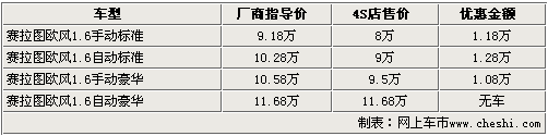 東風悅達起亞旗下的首款兩廂轎車—賽拉圖歐風,憑借著歐洲車型的設計理念和圓潤飽滿的外形,得到消費者的關注。近日記者了解到:賽拉圖歐風將推出1.5排量車型,屆時1.6車型將全部停產。根據網上車市價格監測系統顯示,目前銷售的賽拉圖歐風最高優惠1.3萬元。具體車型見下表: