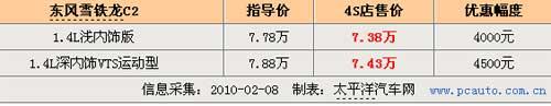 筆者近日走訪北京東風(fēng)雪鐵龍4S店時(shí)獲悉,目前店內(nèi)一批1.4L C2增配車(chē)型正進(jìn)行促銷(xiāo),除了增加(駕駛座椅高度可調(diào)、電動(dòng)后視鏡、電動(dòng)后窗)等配置外,現(xiàn)金優(yōu)惠方面也最高達(dá)到了4500元,算下來(lái)累積優(yōu)惠達(dá)到萬(wàn)元左右。據(jù)了解4S銷(xiāo)售人員表示他們更看好1.4升車(chē)型在北京市場(chǎng)的銷(xiāo)售,原因主要是C2作為一款以運(yùn)動(dòng)、時(shí)尚和外觀為特點(diǎn)的小車(chē)型,吸引的更多是年輕人的目光,而這批獨(dú)有顏色的車(chē)型也是為了迎合了此類需求。