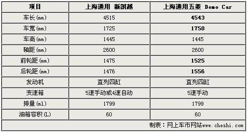 在去年廣西自治區(qū)成立50周年的慶典上,一款在凱越平臺(tái)上重新設(shè)計(jì)、被稱作“Demo Car”的概念車應(yīng)廣西政府要求公開展示,該車型懸掛了五菱車標(biāo)。通過以下基本參數(shù)對比,讓我們看看上海通用五菱自主轎車與新凱越有著怎樣的共性和差異。