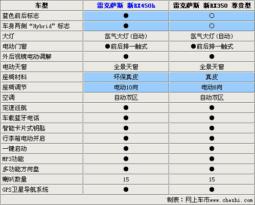 豐田汽車旗下的高端品牌——雷克薩斯在成功的向國內引入全新SUV車型RX350后,又于4月20日正式引入了全新RX的混合動力車型RX450h,售價95.4萬元。為了能讓大家更好的了解這款車型,下面我們將吧全新RX350和RX450h放在一起,來看看這兩款車型在各個方面的特點與差別,希望能對您購車有所幫助。