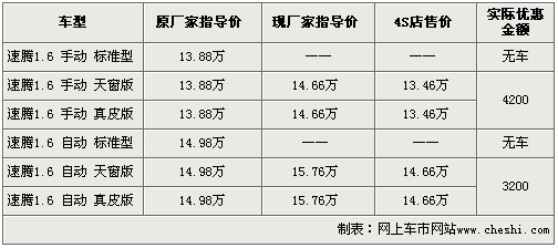 速騰作為一汽大眾新一代“A級”車生產平臺的產物,上市當初憑借全系車型標配ESP電子穩定程序而成為統計標桿。隨著國家對1.6及以下排量車型減免一半購置稅政策的出臺,速騰1.6車型更受到消費者的追捧。據網上車市價格監測系統顯示,速騰1.6排量全系車型廠家指導價格上調,優惠幅度降低。相關車型及價格如下表所示: