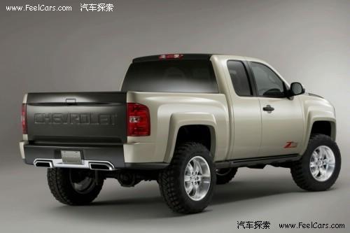 在動力方面,雪佛蘭Silverado ZR2概念車搭載了來自通用的LS supercharged V8發(fā)動機(jī),最大功率可達(dá)550hp。另外,20英寸的Goodyear Wrangler MT/R輪胎,使新車擁有超強(qiáng)的越野性能。(謝恒杰)