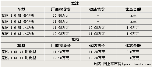 青年蓮花競(jìng)速從上市后已經(jīng)有兩次官方降價(jià),總降幅達(dá)兩萬元。據(jù)青年蓮花4S店銷售人員介紹,競(jìng)速目前只有運(yùn)動(dòng)版兩款車型銷售,這兩款車型都可以優(yōu)惠1.9萬元,最低售價(jià)僅為10.08萬元。而剛上市時(shí)間不就的競(jìng)悅目前也有6000元的優(yōu)惠幅度,而4S店銷售人員表示,如果到店還可以有更多的優(yōu)惠政策。