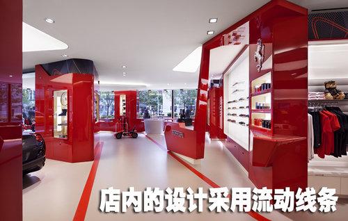 法拉利紐約精品店的內部設計由意大利建筑設計公司負責,以不對稱的流動線條與一種明快流暢的氛圍再現了F1賽車的風馳電掣之勢。售貨區被安排在展廳的一個單獨樓層,空間線條以靈動飄逸、蜿蜒逶迤之姿向內延伸,靈感閃現著法拉利跑車的迷人魅影。展廳還特別設置了法拉利車主專屬的“Atelier工作室”,其中的陳設的軟質皮革和光澤漆面家具均品質上乘、富麗典雅。