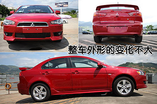 新款LANCER EX的外形有著突破性的改變,采用了接近于LANCER EVOLUTION的鯊魚鼻式的前臉。大嘴造型是時下流行趨勢的先鋒,流暢飽滿的線條無不彰顯著其誘人的魅力,全車輪廓分明,非常有肌肉感,高聳的車尾斜斜地延續到前半部的扁平車頭,很有跑車的氣勢,尤其是有如鷹眼的車頭大燈,顯得炯炯有神。