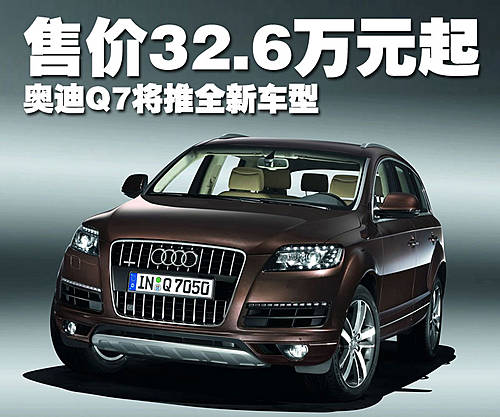 2010款奧迪Q7將在九月抵達經銷商處,新款車型的價格是47725美元起,約合人民幣32.6萬元起。而柴油渦輪增壓版的售價為51725美元起,約合人民幣35.3萬元起。