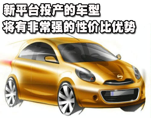 日產(chǎn)目標(biāo)是在2011年,在全球每年銷售100萬臺V平臺車型,其中中國市場將占全球份額的15%-20%,既東風(fēng)日產(chǎn)每年生產(chǎn)及銷售15-20萬臺微型車。