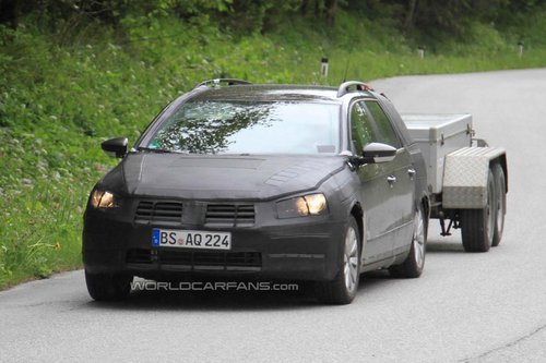 近日,大眾新一代帕薩特旅行版路試諜照曝光,此前曝光的都是三廂轎車版,而旅行版車型還是首次曝光,據悉這款車可能在2012年左右推向市場。由于外部經過了厚重的偽裝,我們很難對其造型做出評價,不過從其前臉輪廓來看,具有典型的大眾家族風格。