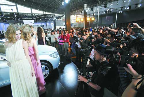 網友“午夜鐘聲”正在奔馳展位上尋找著最合適的拍攝位置,“去年奔馳展位上的洋車模最為出彩,今天肯定要來看一看!彼9點就來到車展主會場,帶著全套攝影裝備,一個小時收獲了300多張照片,“回去整理好就貼我的博客上去。”他興沖沖地說。