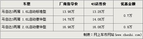馬自達3兩廂優惠幅度接近萬元 最低售價13.28萬