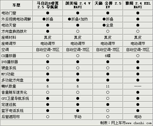 通過上述描述,相信您對這四款車型有了一個大致的了解。馬自達6睿翼外觀設計較為時尚,安全性能突出,具有較高的性價比。新雅閣擁有大氣的外觀,全面的配置絕對能夠滿足大多數公務用途。凱美瑞在市場上有著絕對的號召力和保有量,消費者對它的反應更是有口皆碑的,是一款不折不扣的全能車型。而天籟•公爵則擁有出色的動力性能。四款車可以說是各有各的特點和優勢,至于最終的選擇還要看消費者的實際需求了。 (李曉磊)