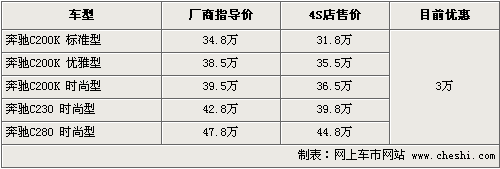 筆者從奔馳北京地區(qū)經(jīng)銷商處了解到,目前奔馳C級(jí)全系優(yōu)惠現(xiàn)金3萬元,C200K標(biāo)準(zhǔn)型優(yōu)惠售價(jià)僅為31.8萬,C230優(yōu)惠后僅售39.8萬,C280時(shí)尚型優(yōu)惠后售44.8萬元。目前4S店內(nèi)有銀色、黑色等款現(xiàn)車供應(yīng),消費(fèi)者可以到店試乘試駕,感受這款車的性能。