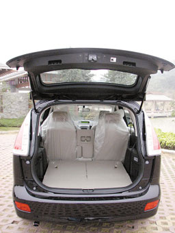 所以,馬自達5適合城市短距離的接送,但不適合滿載長距離旅行。第三排位置直立時,行李廂空間很小只有90L,但是第二、三坐椅都可以向前折疊而形成一個寬大的儲物平臺,這點和其他MPV類似。