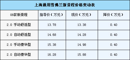 目前,我們從經(jīng)銷商處了解到,08款景程一上市就可以有小幅的優(yōu)惠,目前優(yōu)惠4千元,詳情見表。