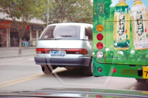 按照交通規則,馬路上的雙黃實線,車輛行駛既不能壓線,更不能跨越。在天河岑村附近的這條長興路,雙向四車道卻頻頻有車輛視中央的雙黃實線為無物。圖中左邊這輛廣州車牌的MPV,僅僅因為嫌前方的公交車行駛太慢,于是心急地從左方壓著雙黃實線超越前方的公交車。記者在現場看見,這輛車在超越中途,半個車身甚至越到了對面車道,影響相向車輛的行駛,相當危險。(鄧莉)