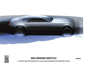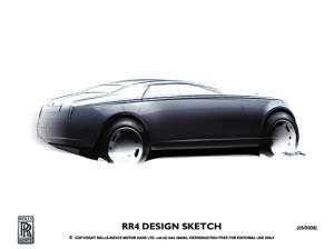 勞斯萊斯汽車有限公司日前公布了全新車型的首批設計草圖。作為勞斯萊斯家族的最新成員,此款代號為RR4的車型將于2010年正式發布。RR4將略小于幻影,并配備勞斯萊斯獨有的新型引擎。