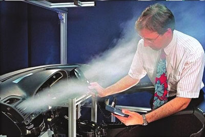 除了駕駛室內的氣體檢測器外,汽車氣味傳感器被安裝在車輛前保險杠的周圍。前方車輛排出的尾氣,或車前方刮來的有害氣體會從車頭由縫隙進入駕駛室內,前保險杠周圍的氣味傳感器便可以檢測出進入的一氧化碳、二氧化氮、碳氫化合物以及揮發性有機化合物。當濃度超過基準值時,汽車空調將由外部循環切換為內部循環,同時傳感器會啟動系統車內排氣功能,將這些有害氣體盡可能快地排出車外。