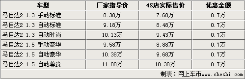 據(jù)長安馬自達銷售人員表示,購買馬自達2車型除了可以得到7000元現(xiàn)金優(yōu)惠外,還可以得到廠家贈送價值千元的原廠汽車裝飾。目前馬自達2兩廂車型的貨源比較緊張,部分車型需要提前預(yù)訂,訂貨周期一般在7-15個工作日左右。由于小排量車型的購置稅下調(diào),整體購車價將會下調(diào)3-4千元左右,在加上目前的現(xiàn)金優(yōu)惠,消費者目前購車還是比較劃算的。