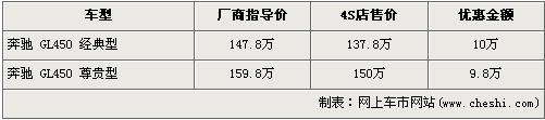 據(jù)經(jīng)銷(xiāo)商處銷(xiāo)售人員介紹,目前國(guó)內(nèi)在售的奔馳GL級(jí)分為GL450 經(jīng)典版與GL450 尊貴版,上個(gè)月兩款車(chē)型的優(yōu)惠金額分別為3萬(wàn)元和4.8萬(wàn)元,近日奔馳GL系的優(yōu)惠金額暴增,優(yōu)惠近額分別漲到了10萬(wàn)元和9.8萬(wàn)元。經(jīng)優(yōu)惠后,低配車(chē)型的經(jīng)典版售價(jià)將為了137.8萬(wàn)元,首次跌破140萬(wàn),高配的尊貴版車(chē)型售價(jià)也降為了150萬(wàn)元。