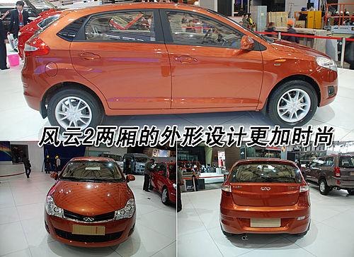 奇瑞風云2兩廂的外形設計更加時尚,非常適合年輕消費者的需求。這款新車的前臉與尾部的設計與概念車稍有改變,但新穎的造型仍然吸引了很多觀眾的注意。奇瑞風云2的前進氣格柵采用V型設計,周圍配備了鍍鉻鑲邊,與中央的奇瑞LOGO相互輝映,看上去非常動感。而前大燈與霧燈的造型也非常獨特,個性化的設計非常值得贊賞。