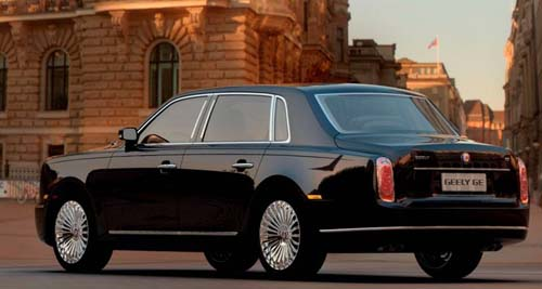 吉利GE的車長在5.3米左右,軸距3.1米左右。我們從外形上可以看出,它與勞斯萊斯幻影有著非常相似的造型,僅在細節處理上有所不同,GE大燈異常寬大,接近正方形,勞斯萊斯幻影上的大圓霧燈則移植到保險杠上,大燈與霧燈中間以長條形的方向燈隔開。而這也是吉利這款高檔豪華轎車的理念:具有勞斯萊斯風格的產品。在車內,也同樣是勞斯萊斯幻影的風格:前后排隔離玻璃、羊毛地毯以及星空頂篷等,同樣給人非常豪華的感覺。另外,我們注意到,車內的后排只有一個座椅,彰顯了后排乘客的尊貴性。在后排座椅的兩側有吧臺和冰箱,而在車門內側還有專門放雪茄的儲藏格。其售價將超百萬,最快將于2011年正式上市。