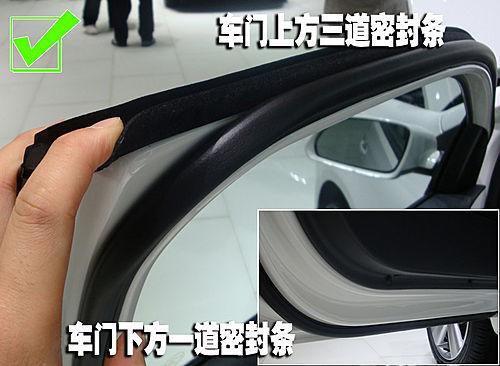 上海大眾POLO在車門上方提供了三道密封條,這是三款車型中獨有的設(shè)計,在車門下方為一道密封條。并且如果用手去觸摸的話也能夠感覺到POLO的密封條質(zhì)地軟硬適中有很好的彈性。