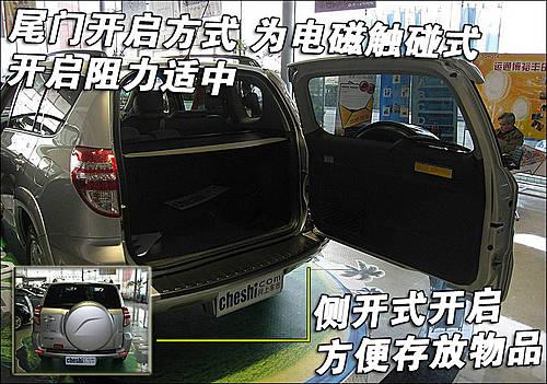 豐田國產RAV4尾門為電磁式側開啟,在實際使用過程發現其開啟力度適中。由于采用側門開啟方式,所以十分方便乘客存放物品。