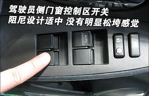 駕駛員側車門控制區集成了門窗以及中央門鎖控制鍵,整體做工十分細致,間隙均勻。使用時發現各按鍵的阻力適中,沒有明顯松垮的感覺。