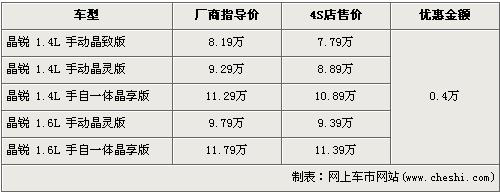 據(jù)記者了解,據(jù)記者了解,目前購(gòu)買(mǎi)斯柯達(dá)晶銳車型的車主可以享受到4000元的優(yōu)惠。晶銳1.4L低排量車型共分為手動(dòng)晶致版、手動(dòng)晶靈版和手自一體晶享版三個(gè)車型,經(jīng)優(yōu)惠后售價(jià)分別降為7.79萬(wàn)元、8.89萬(wàn)元及10.89萬(wàn)元。晶銳1.6L車型共分為手動(dòng)晶靈版和手自一體晶享版兩個(gè)車型,經(jīng)優(yōu)惠后售價(jià)降為9.39萬(wàn)元和11.39萬(wàn)元。記者還了解到,斯柯達(dá)晶銳有一個(gè)特色的選裝車頂顏色的項(xiàng)目,可以把任意一款晶銳車型的車頂換成與MINI一樣的白色,換裝白頂?shù)膬r(jià)格為在原廠商指導(dǎo)價(jià)的基礎(chǔ)上多加1750元現(xiàn)金,欲選裝白頂?shù)南M(fèi)者需交1萬(wàn)元訂金,約等2-6周后才可提車。