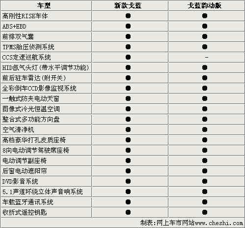 新款戈藍還增加了戈藍韻動版車型,這款新車在整車的設計方面都有新的變化。在外觀方面,戈藍韻動版采用深灰色HID大燈、運動型灰色涂裝水箱護罩以及多幅動感鋁合金輪轂。內(nèi)飾方面采用了黑色內(nèi)飾風格,配備了12聲道環(huán)繞立體聲喇叭和運動型金屬踏板,使整車看上去更具運動氣質(zhì)。