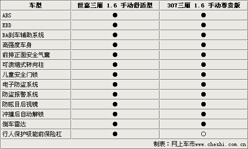 東風(fēng)雪鐵龍世嘉三廂和標(biāo)致307都屬于同一平臺的產(chǎn)物,所以在車身結(jié)構(gòu)上完全一樣。作為同一級別的兩款車型在安全配置方面基本相同。ABS、EBD、安全氣囊、安全車身都被列為了它們的標(biāo)準(zhǔn)配置。值得一提的是它們還裝備了沖撞自動解鎖系統(tǒng),大大確保了在發(fā)生事故時乘員的安全。但仔細(xì)看下來,世嘉三廂配備了碰撞緩沖保險杠,該項配置確保了在發(fā)生事故時對行人傷害的程度降到最低。