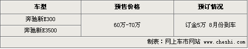 據(jù)4S店銷售人員介紹,目前奔馳老款E級各4S店已經(jīng)停產(chǎn),不再接受消費者預(yù)訂,而新款E級可以接受預(yù)訂,訂金為5萬元,銷售人員介紹預(yù)計8月份可以到車。首批到車的是進口的新E300和E350,預(yù)售價格在60萬元-70萬元之間。同時銷售介紹6月份北京地區(qū)將有新E級的巡展活動舉辦,關(guān)注這款車的消費者可以留意4S店的相關(guān)信息。