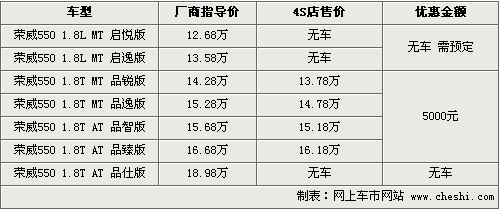 據4S店銷售人員介紹,目前榮威550銷售的車型主要以1.8T車型為主,其中性價比較高的車型為1.8T品臻型,4S店內現在有現車供應,現金優惠5000元左右,到店還可有一定幅度讓利。而1.8L啟悅版、啟逸版和1.8T品仕版則需要預定,訂金為2000元,需要等一個星期左右。