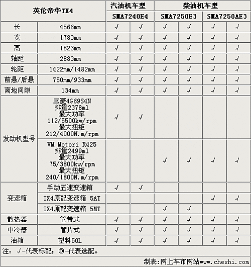 英倫TX4的長寬高分別是4566/1783/1823毫米,雖然是一款A(yù)級(jí)車的外形尺寸,但這款車的軸距為2883毫米,達(dá)到了一款B級(jí)車的水平。TX4分為汽油版和柴油版,汽油版搭載三菱4G69系列發(fā)動(dòng)機(jī),而柴油版搭載大眾的R425柴油發(fā)動(dòng)機(jī)。從動(dòng)力數(shù)據(jù)方面來看,柴油版擁有低速高扭的特點(diǎn),而汽油版的最大功率達(dá)到112千瓦,而且具有很好的經(jīng)濟(jì)性。TX4汽油版匹配手動(dòng)五速變速箱,而柴油版卻可以匹配原裝的五速自動(dòng)變速箱。