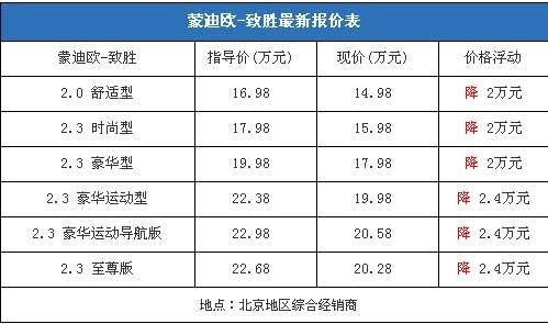4月份蒙迪歐-致勝的銷量不到4000輛,仍有較大的上升空間。為了提升銷量,經銷商不斷的加大其優惠力度。我們從北京地區的經銷商處了解到,蒙迪歐-致勝全系車型的優惠均在2萬元以上,其平均價格比一個月前下降了1000元,目前致勝最低配車型再次跌破15萬元區間,僅售14.98萬元,性價比再次得到提升。