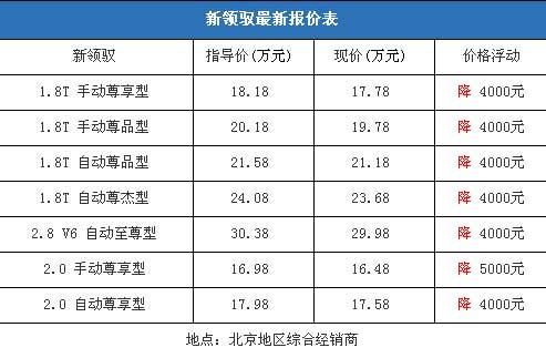 目前新領馭在北京地區2級經銷商處的優惠均在4000-5000元區間,其中新領域最低配車型目前的售價為16.48萬元。