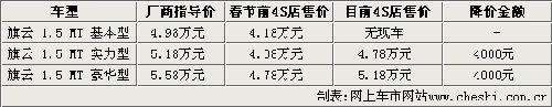 奇瑞自推出1.5L新旗云以后,該產品的市場競爭力進一步加大。雖然新旗云的車型有些偏老,但較低的價格依然吸引著消費者的眼球。雖然曾經有段時間奇瑞新旗云最高可以優惠現金8000元,但是現在由于車市轉暖,經銷商沒必要把價格持續放低,各店只能優惠4000元。