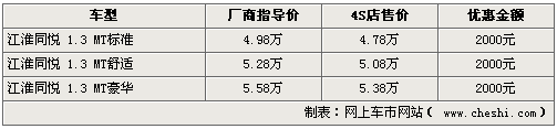 據銷售人員介紹,現在北京銷售同悅系列車型主要為1.3L三廂舒適版以及豪華版車型,同悅RS也是近期進駐各店,與三廂版優惠保持一致。問及1.5L的同悅系列車型何時到店尚不知曉,不過現階段購買1.3L同悅三廂版全系車型可給出2000元的現金優惠。
