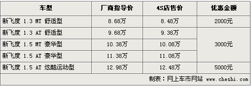 新飛度一直是AO級市場最熱銷的一款車型之一,動感時尚的外觀是最大的亮點,其次運動感強烈的內飾方向盤,頂配裝有運動座椅。而最值得一提的是新飛度在城市行駛具有非常經濟的油耗,所以廣受歡迎。目前筆者從廣州本田經銷商處了解到,新飛度現在最高可優惠現金5000元,具體行情如下: