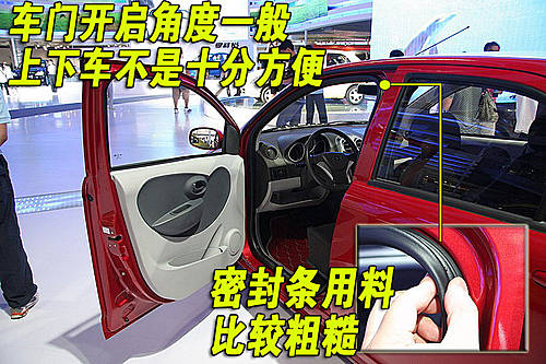 駕駛員一側車門完全打開后車門開啟角度有限,身材較高的用戶上下車會比較不方便。車門四周有橡膠密封條手觸感覺比較粗糙。