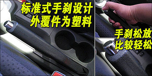 天津一汽威姿V1車型手剎依然是普通的拉桿式設計,黑色設計與內飾基調相吻合。實際操作過程中感覺行程較短、力度適中,厚實的用料使手握時感覺舒適。