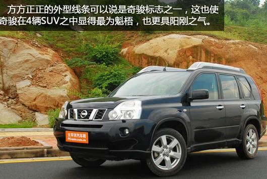 奇駿的方方正正的外型線條已經(jīng)是它的標(biāo)志之一,從上一代車型上沿用下來的設(shè)計元素使得第二代奇駿也很富越野的風(fēng)格。現(xiàn)款車型的鍍鉻大型中網(wǎng)以及梯形的大燈,使奇駿車頭相當(dāng)?shù)木哂袣鈩荨M瑯邮且驗榉秸耐庑途條,令奇駿在4輛SUV之中顯得最為魁梧,也更具陽剛之氣,所以我估計奇駿起碼有8成都是男性車主,不知道是否大家同意我的看法?