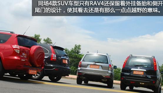 RAV4是國(guó)產(chǎn)豐田陣型中體積最小的SUV車型,但也運(yùn)用了其余兩個(gè)老大哥的一些設(shè)計(jì)元素。引擎罩上兩條隆起的肌線露出些許SUV的氣勢(shì),修長(zhǎng)的車身線條使整車看起來毫不失色于其他對(duì)手。RAV4是同場(chǎng)4款SUV車型唯一還保留著外掛備胎的設(shè)計(jì),使RAV4從后方看去還是有那么一點(diǎn)點(diǎn)越野的性格。