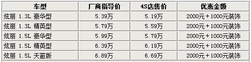 據4S店銷售人員介紹,長城炫麗雖然上市時間較長,但現車銷售狀況卻表現一般,所以為了盡快進入暑期的促銷旺季才開始優惠銷售。另外,4S店銷售人員也表示,現車的車型和顏色并不是很全,現在購買炫麗系列車型,消費者不僅可享受現金優惠,還可以贈送地膠、腳墊、貼膜等價值千元的裝飾,但不能折現。