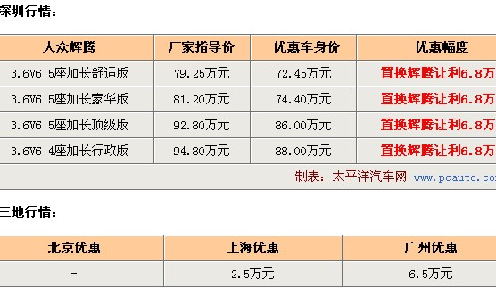 行情點評:作為大眾最頂級的豪華轎車,大眾輝騰近期的行情并沒有讓人有多大驚喜。作為一款80萬元的豪華轎車,輝騰的售價相比同級別車型具有很大優(yōu)勢,但從這次優(yōu)惠的方式來看,對于第一次購車的消費者會感到一點遺憾。