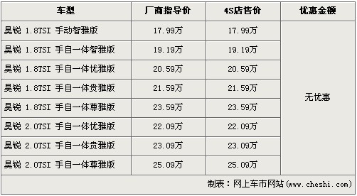 據(jù)4S店銷售人員介紹:目前明銳全系最高優(yōu)惠9000元,1.6升及1.8TSI車型優(yōu)惠減少,尤其1.8TSI車型由原來(lái)的8500元降至5000元。2.0升目前優(yōu)惠9000元,優(yōu)惠幅度很大,并且2.0升車型有現(xiàn)車,顏色包括銀色、灰色車型。1.6升車型全系現(xiàn)車少,如需預(yù)定最短等待1個(gè)月,最長(zhǎng)需等3個(gè)月時(shí)間。目前1.6升車型優(yōu)惠達(dá)5000元,1.8TSI的兩款車型優(yōu)惠5000元。如在店內(nèi)做裝飾還可打8折,雖然折后裝飾價(jià)格仍有些偏高,但產(chǎn)品質(zhì)量可以保證。