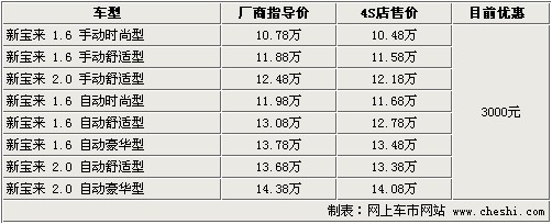 據(jù)4S店銷售人員介紹:目前大眾新寶來全系可優(yōu)惠3000元。目前新寶來全系現(xiàn)車較充足,顏色也比較齊全。如需預(yù)定車輛需等待2周至一個(gè)月時(shí)間,訂車周期較短,如著急用車的朋友請(qǐng)安排好用車時(shí)間。車價(jià)方面,新寶來在優(yōu)惠3000外,個(gè)別經(jīng)銷商還可送一些簡單裝飾,主要是腳墊等。