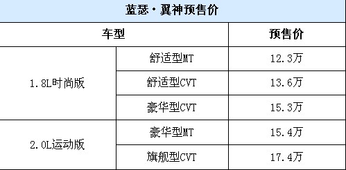 作為今年緊湊型車市另外一款重要的產品,東南汽車官方表示,從2009年10月15日起三菱LANCER EX藍瑟·翼神正式以12.3-17.4萬元的預售價接受消費者預定。其中1.8L時尚版共三款,分別為舒適型MT 12.3萬元,舒適型CVT 13.6萬元,豪華型CVT 15.3萬元;2.0L運動版共兩款,分別為豪華型MT 15.4萬元,旗艦型CVT 17.4萬元。新車將于11月份中旬正式上市。